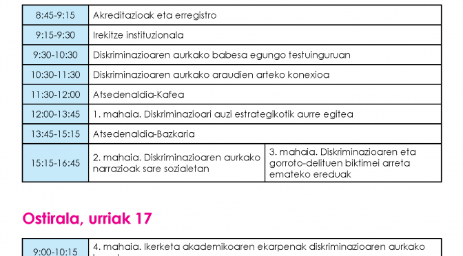 Eraberean tratu-berdintasunaren eta diskriminaziorik ezaren aldeko sarearen X. urteurrena ospatuko dugu datorren asteazkenean, Miquel Misse hitzaldiarekin. Eraberean Sareko kideek Sareak urte hauetan izandako lorpenak eta … Continue reading Eraberean sarearen X.urteurrena